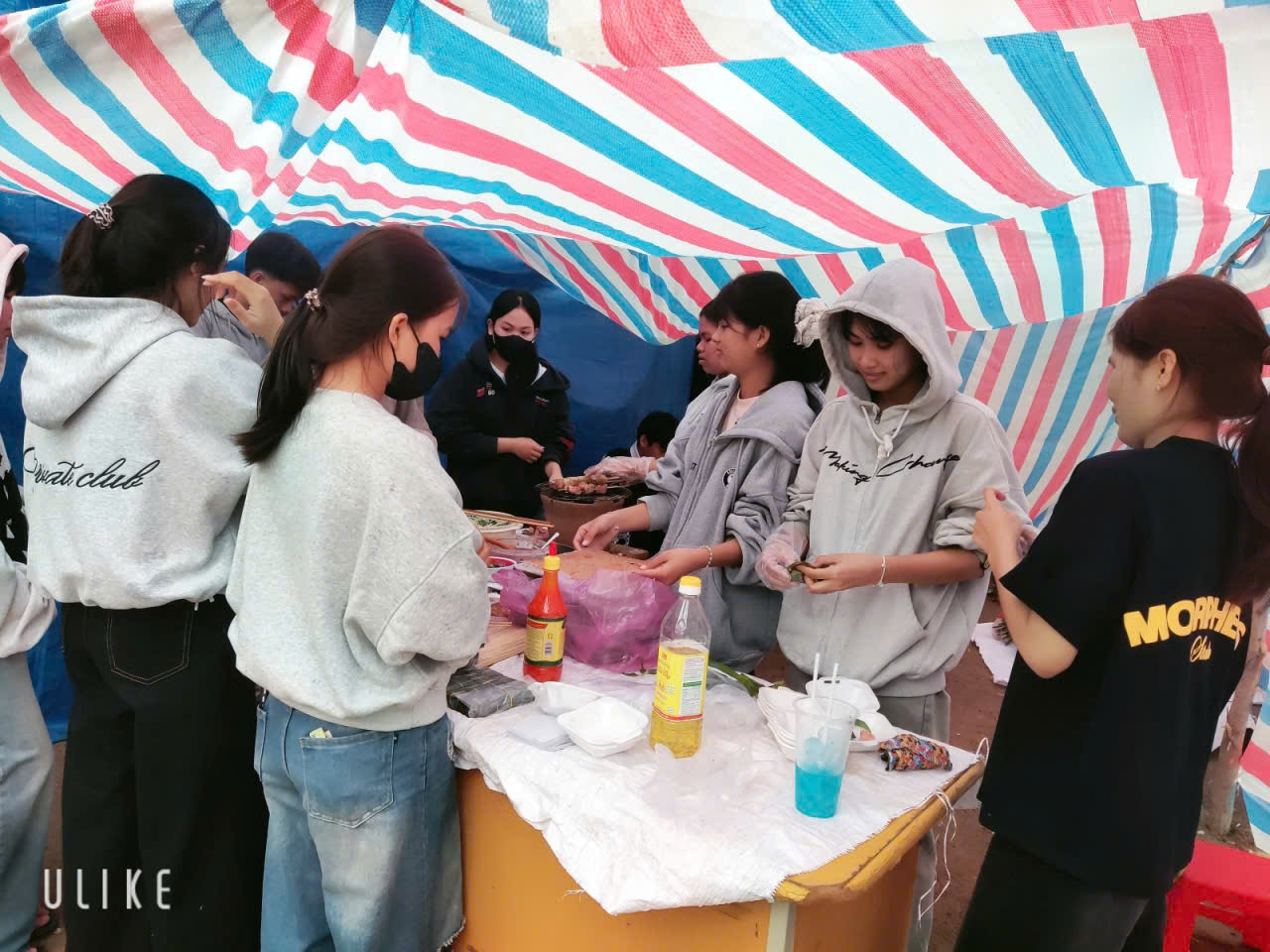Bắt đầu từ 9h00, khu vực trước lều trại trở thành không gian ẩm thực Mừng Đảng – Mừng Xuân. Mỗi lớp thiết kế một gian hàng với các món ăn, thức uống đặc trưng ngày tết hoặc món ăn tuổi học trò, bảo đảm vệ sinh, an toàn thực phẩm, giá cả hợp lý.