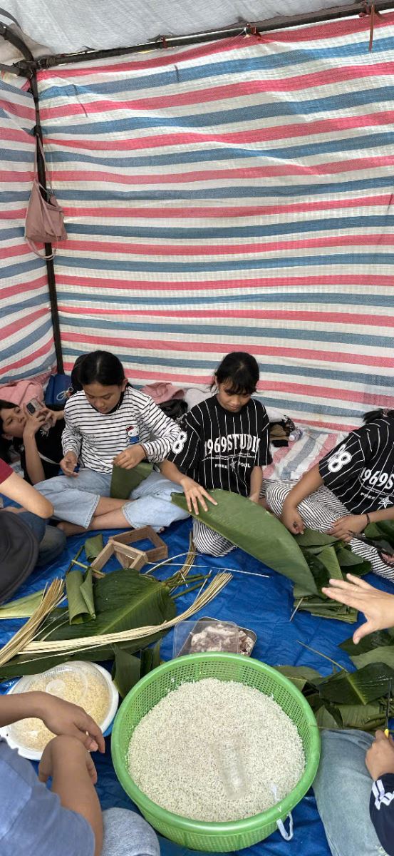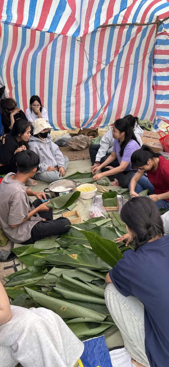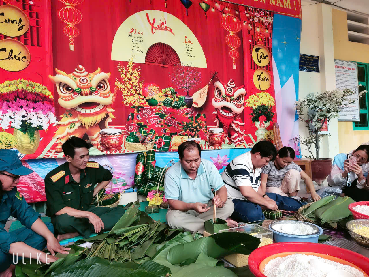 Chiều 11/02, từ 13h30 đến 16h30, 18 lớp bước vào phần thi gói bánh chưng – hoạt động trọng tâm mang đậm sắc màu Tết cổ truyền. Mỗi lớp gói tối thiểu 10 chiếc bánh, kích thước chuẩn khoảng 15cm × 5cm, gói chặt tay, buộc dây gọn gàng. Bánh được nấu ngay tại khu vực lều trại, các lớp phân công học sinh trực nấu suốt đêm dưới sự quản lí của giáo viên chủ nhiệm.